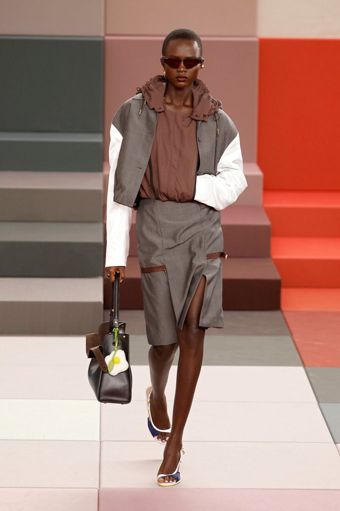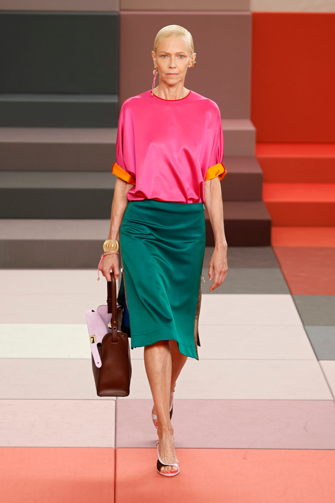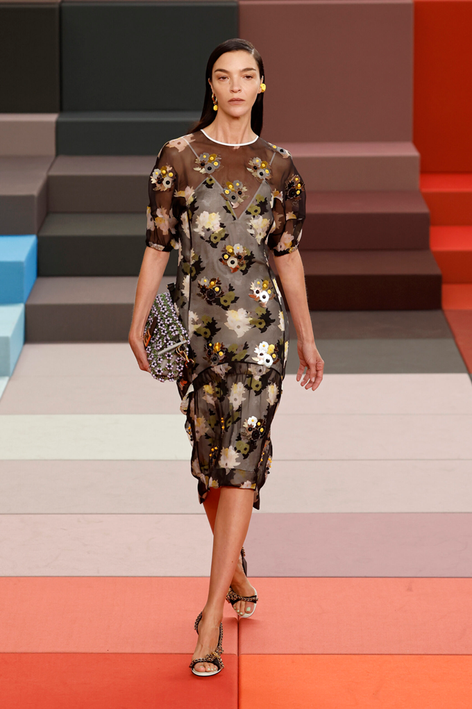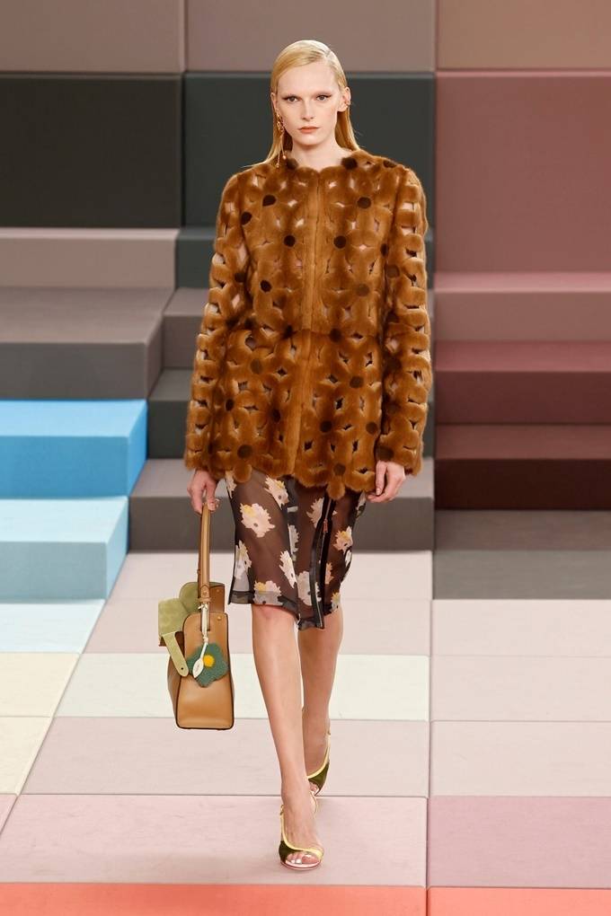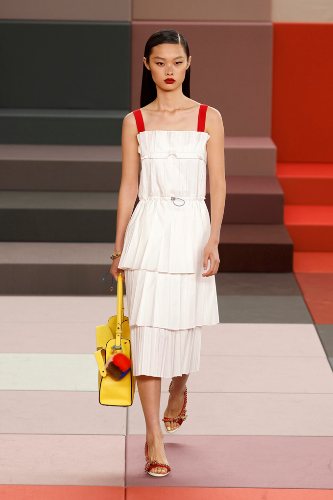 창업주의 손녀 실비아 벤투리니 펜디는 깃털처럼 가벼운 실루엣과 광학적 디자인 요소를 통해 여름의 우아함과 경쾌함을 제시하고 형태의 명료함과 색채의 구조적 활용을 강조한 컬렉션을 선보였다