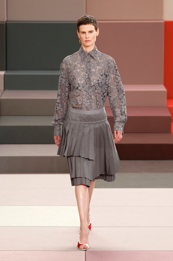테일러링 재킷의 버튼 여밈에 컬러풀한 버튼홀 탭(buttonhole tab)을 추가하고, 스포츠웨어의 상징과도 같은 엘라스틱 스트링은 재킷가 원피스, 스커트, 실크 파유(faille) 소재로 만든 스포츠 재킷과 복서 브리프, 레이저 컷 가죽 아우터 등에 스포츠 코트와 디테일을 변주하며 눈길을 끌었다.
