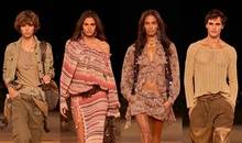 워싱 처리된 저지와 실크, 햇볕에 그을린 가죽, 비즈 장식 프린지, 방랑자 유목민을 장싱하는 토템 자수는 세월에 풍화된 직물의 느낌을 자아냈고, 가죽은 열에 그을리고 양각으로 새겨진 듯했다.