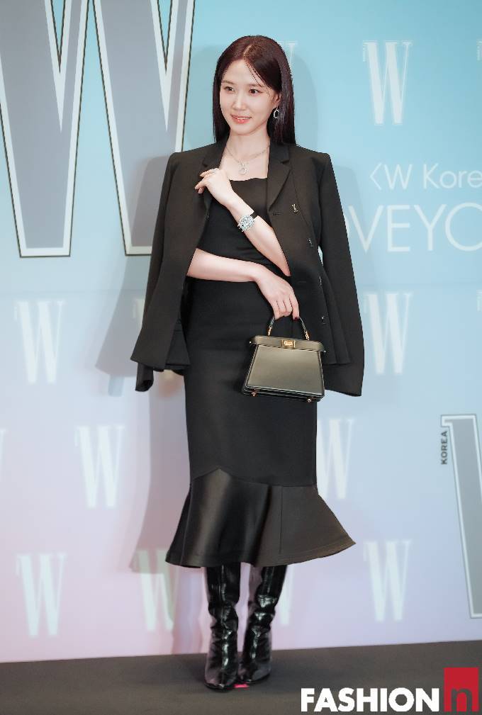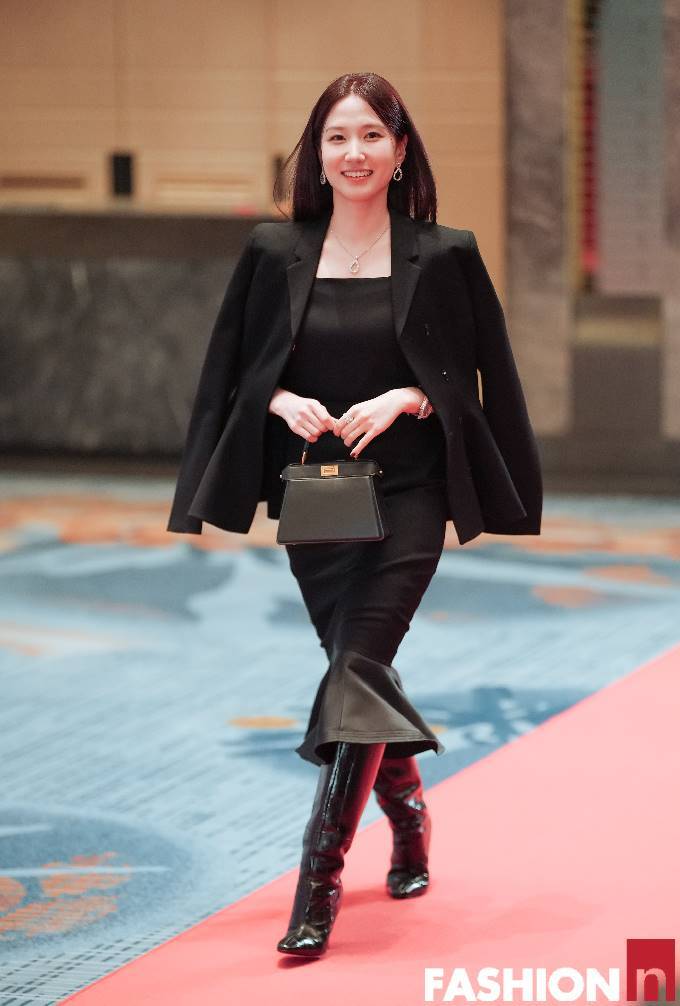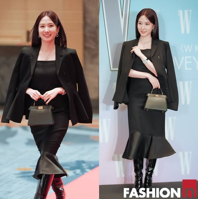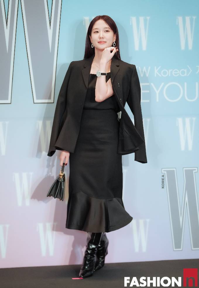 이날 박은빈은 플레어 디테일이 더해진 블랙 머메이드 드레스에 블랙 재킷을 매치한 올 블랙 슈트룩으로 우아하면서도 여성스러운 실루엣을 드러냈다.