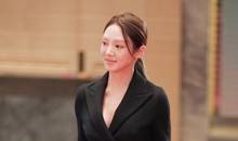 정수정은 이날 가슴선이 드러날 정도로 네크라인이 깊게 파인 하늘거리는 맥시 드레스룩으로 시선을 강탈했다.