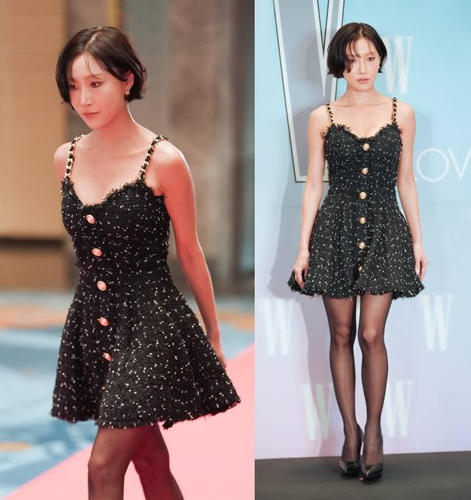 2025.10.15마마무 화사가 단아한 트위드 탱크탑 드레스룩으로 반전 매력을 발산했다.