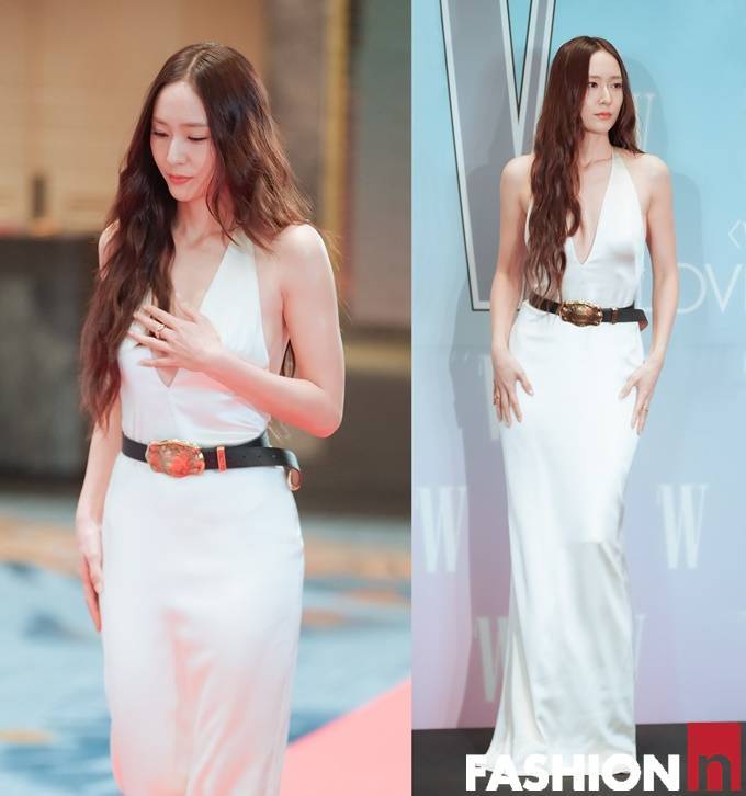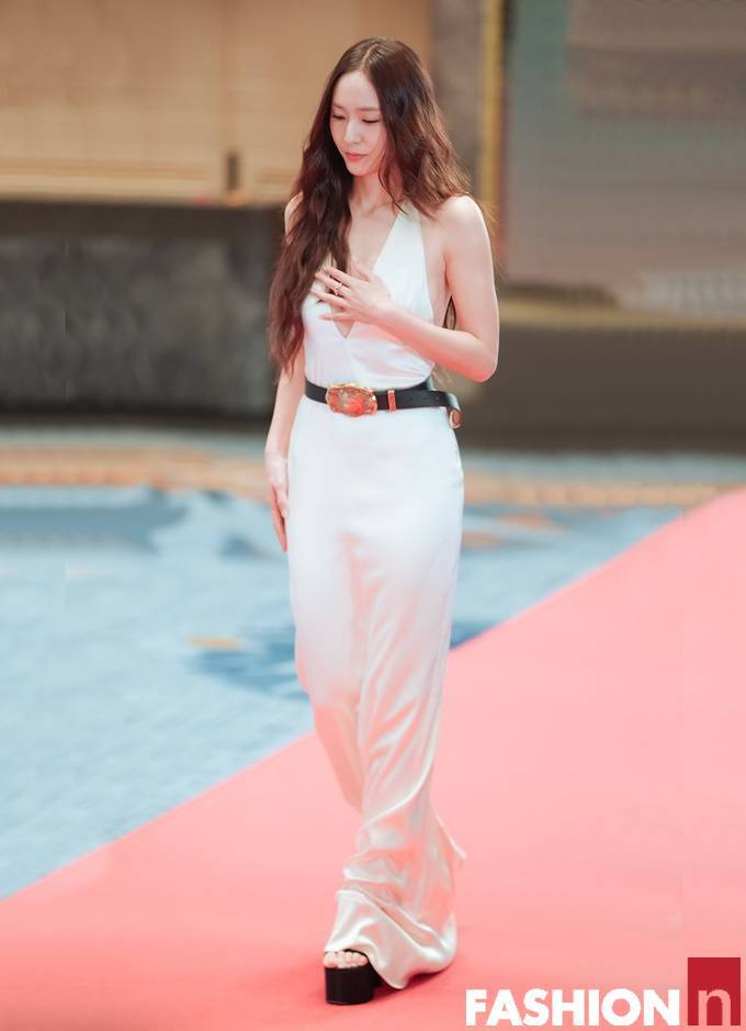 2025.10.15가수 겸 배우 정수정(크리스탈)이 하이 클리비지의 화이트 드레스룩으로 매혹적인 자태를 빛냈다.