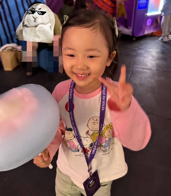 딸 역시 스누피 프린트 티셔츠와 핑크 맨투맨을 레이어드한 귀여운 룩으로 시선을 사로잡았다.
