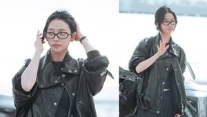 [패션엔숏] 에스파 카리나, 뿔테 안경도 찰떡! 가죽 재킷으로 멋낸 걸크러시 레더룩