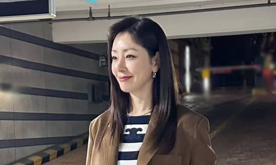 배우 오나라가 스트라이프 티셔츠에 스웨이드 재킷을 매치한 데일리룩으로 멋스러운 일상 현실 패션을 완성했다.