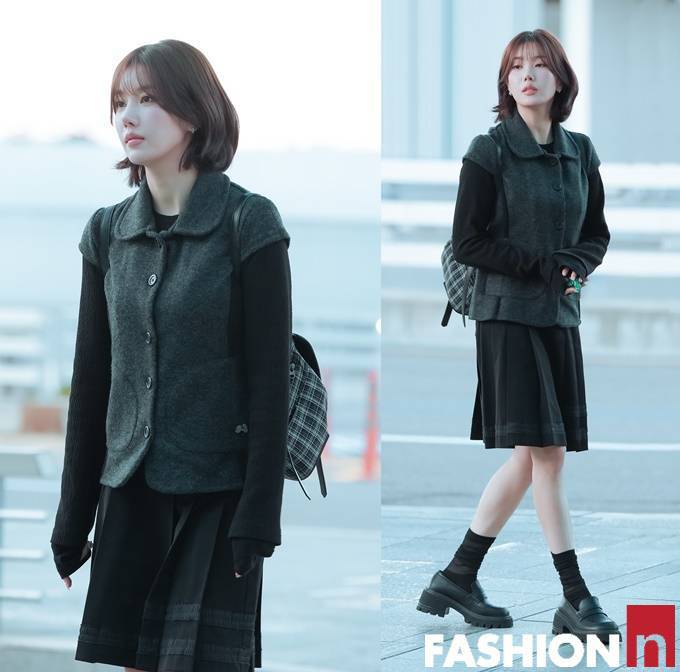 [패션엔 포토] 권은비, 이번에도 워터밤 여신 예고! 백팩까지 멘 스쿨룩 호치민 출국