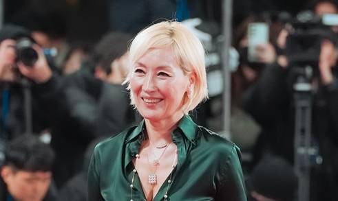 이날 이혜영은 짧은 금발 헤어 스타일에 에멜랄드 그린의 셔츠 드레스룩으로 62세 나이가 믿기지 않는 우아하면서도 카리스마 넘치는 분위기를 자아냈다.