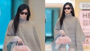 여기에 블랙 선글라스와 퍼 미니 핸드백을 매치해 시크&러블리 출국룩을 완성했다.