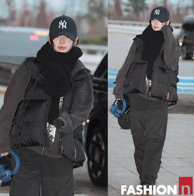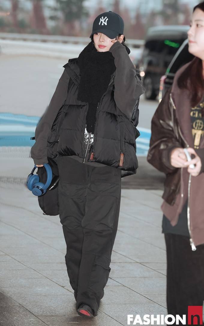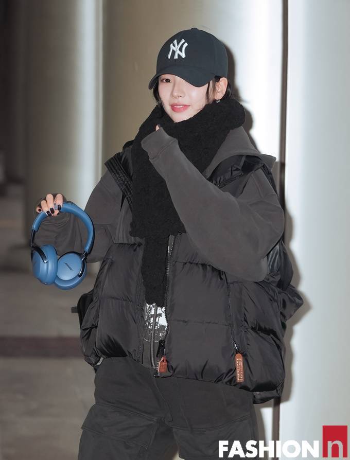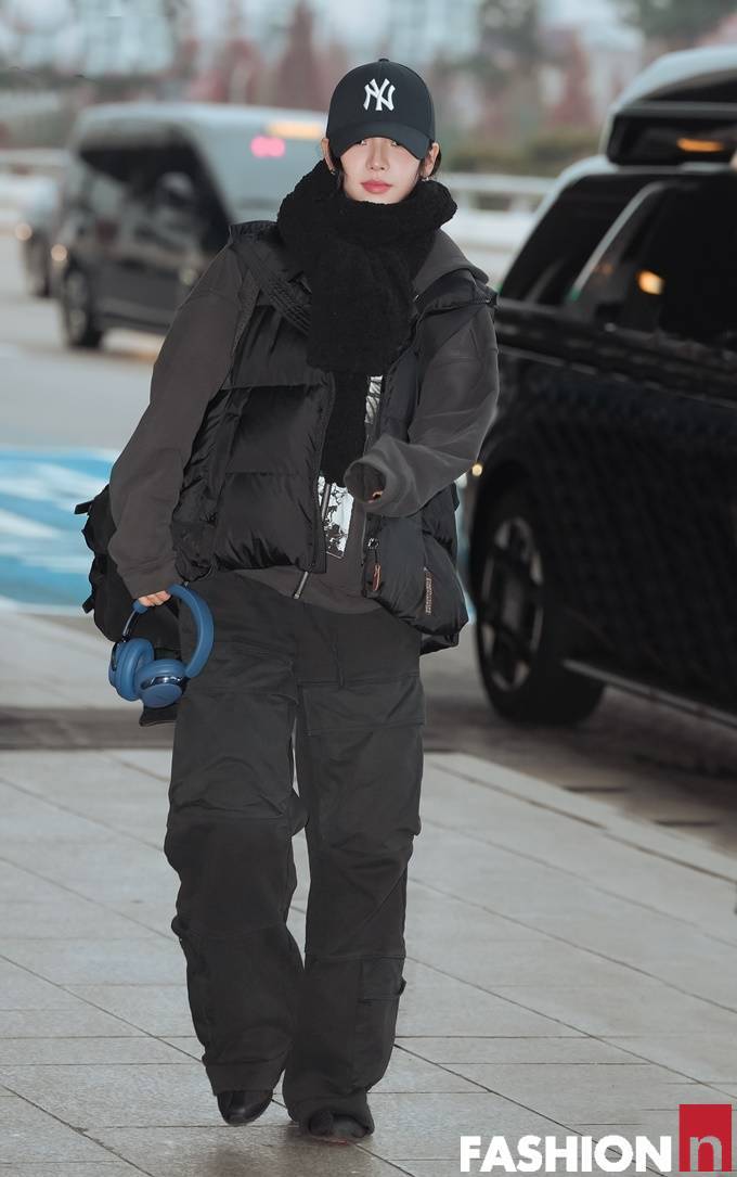 [패션엔 포토] 에스파 카리나, 숏패딩과 카고 팬츠! 볼캡 쓴 힙한 패딩룩 오사카 출국