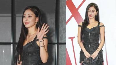 그룹 트와이스(TWICE) 지효가 관능적인 Y2K 데님 코르셋 드레스룩으로 성수동을 발칵 뒤집어 놓았다.