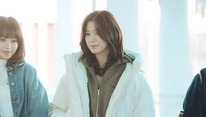 그룹 르세라핌 카즈하가 화이트 숏패딩으로 공항을 밝혔다.