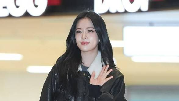 이날 안유진은 큼직한 호주머니가 돋보이는 가죽 봄버 재킷과 미니 스커트를 매치한 레더 프레피룩으로 공항을 사로잡았다.