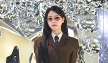 이날 유나는 브라운 스커트 슈트, 여기에 독특한 스타일의 선글라스를 매치한 단아한 클래식룩으로 눈길을 사로잡았다.