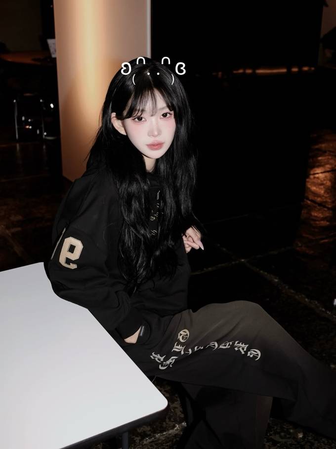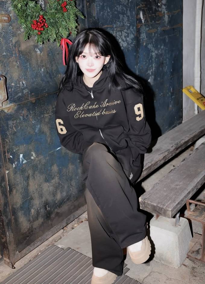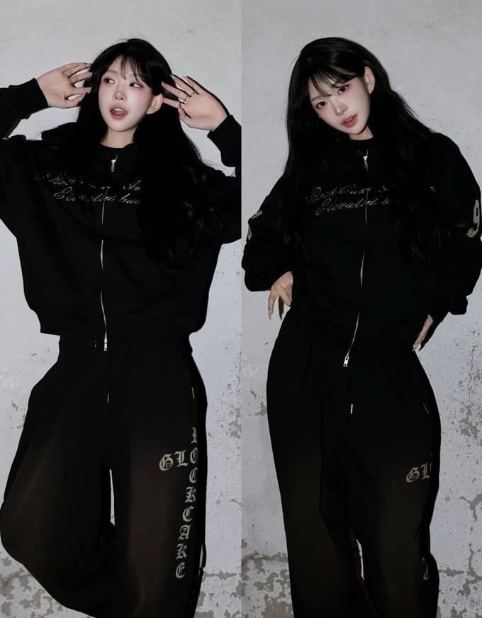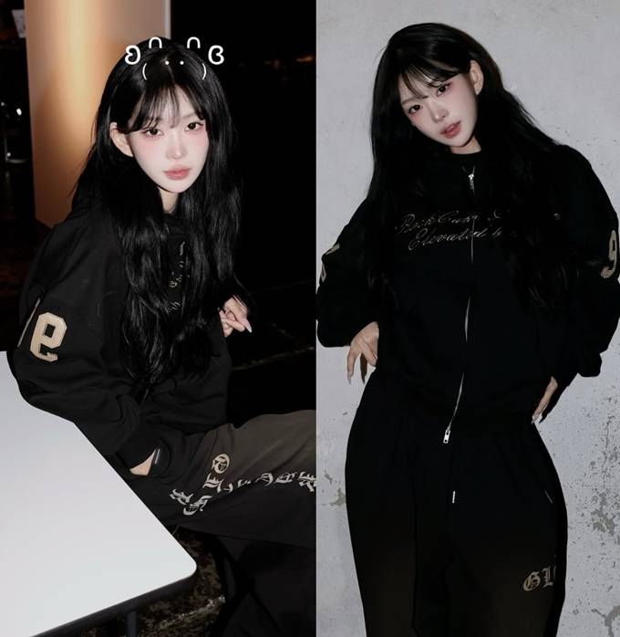 공개한 사진에서 최준희는 와이드핏 블랙 팬츠에 블랙 후드 집업 재킷을 매치한 트레이닝 스타일의 애슬레저룩으로 걸그룹 같은 동안 미모를 드러냈다.