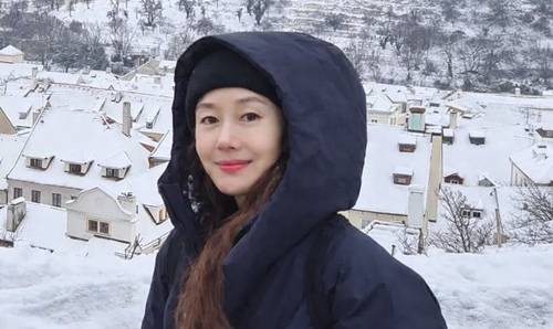 배우 김지수가 체코 프라하에서 후드 패딩룩으로 눈썰매를 즐겼다.