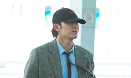 그룹 세븐틴의 민규가 헤링본 코트에 볼캡을 매치한 출국룩으로 조각 같은 남성미를 드러냈다.