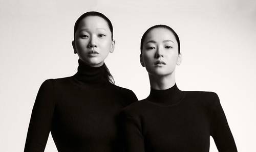 공개한 사진에서 장윤주과 전여빈은 올백 헤어 스타일에 몸에 밀착된 블랙 톱과 블랙 롱 스커트의 올 블랙 스타일로 쌍둥이 같은 트윈룩을 완성했다.