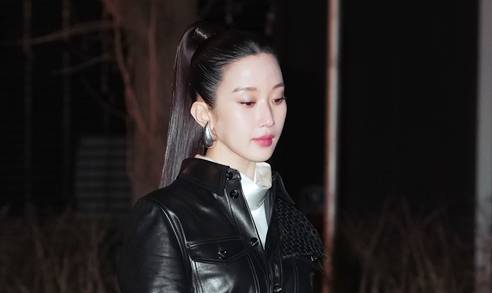 이날 문가영은 올백 포니테일 헤어 스타일에 광택감이 있는 블랙 크롭 레더 재킷과 체크 레더 팬츠를 착용한 가가 패션으로 시크하면서도 러블리한 미모를 드러냈다.
