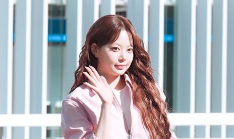[패션엔 포토] 르세라핌 홍은채, 핑크빛 여친미! 봄 햇살보다 예쁜 핑크 셋업 출국룩