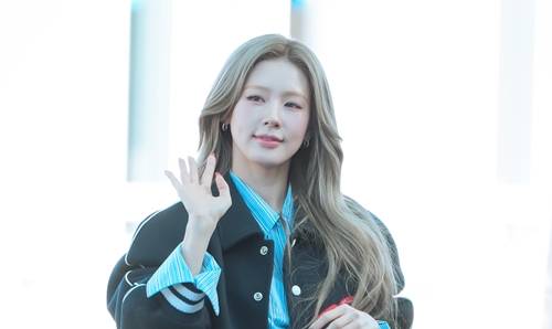 [패션엔 포토] 아이들 미연, 원피스야 티셔츠야? 러블리 쇼츠와 바시티 재킷 출국 여친룩