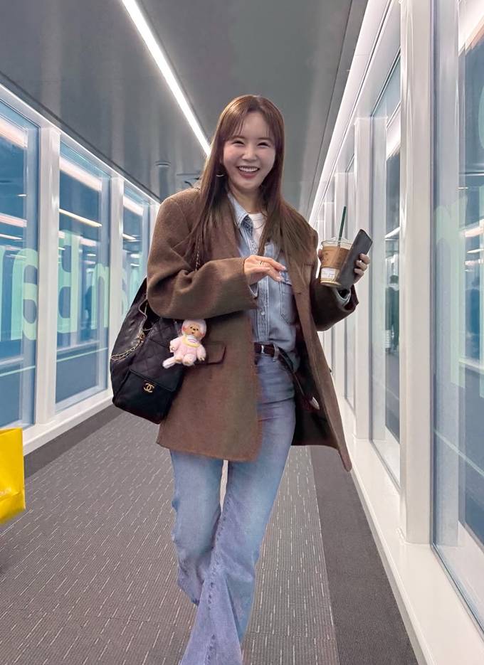 공개한 사진에서 장영란은 데님 팬츠와 데님 셔츠의 청청 패션에 브라운 재킷을 걸친 출국룩으로 심플하면서도 스타일리시한 커리어우먼의 출장 스타일을 완성했다.