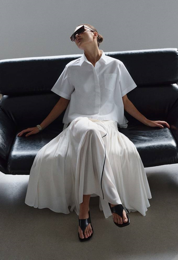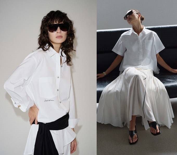 한쪽 숄더 라인에 드레시한 러플 장식을 더한 셔츠, 볼륨감있는 소매가 매력적인 비비드한 린넨셔츠, 그리고 탈부착 가능한 리본 끈과 핀턱 디테일로 우아함을 살린 아이템 등이 포함되었다.