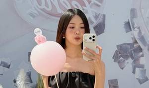 또한 핑크 컬러의 풍선을 활용한 센스 있는 스타일링은 룩에 위트를 더하며, 성수동 특유의 감각적인 분위기와도 자연스럽게 어우러졌다.