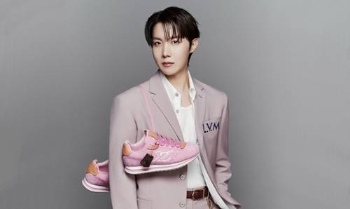 특히 제이홉은 ‘LV 버터소프트 스니커즈’에 핑크빛이 도는 슈트를 매치해 멋스러운 댄디룩을 완성했다.