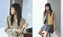 레더 재킷과 슬리브리스 원피스, 스웨이드 크롭 재킷과 미니 스커트 및 시스루 원피스, 워크 재킷과 레이스 스커트 등 다양한 아이템의 레이어드와 감각적인 스타일링으로 여심을 유혹한다.